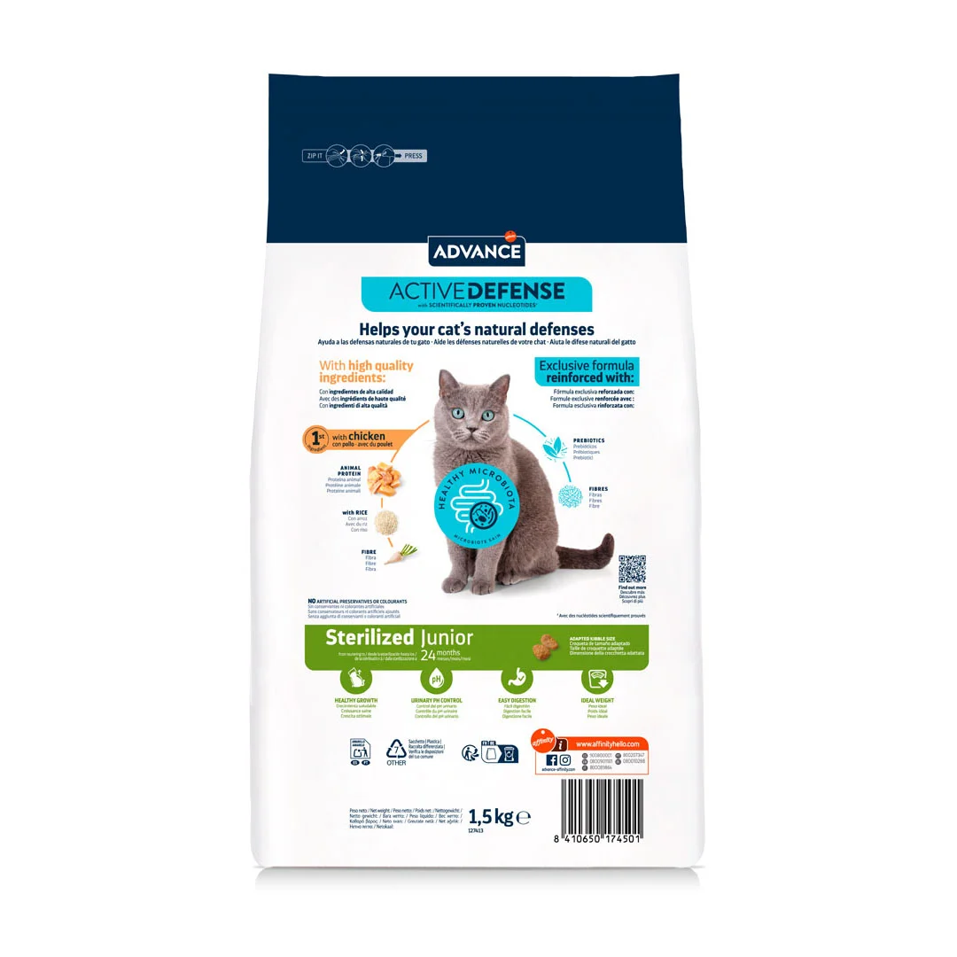 Pollo (17%) , proteína de maíz , arroz (14%) , maíz , proteínas deshidratadas de cerdo , proteínas deshidratadas de ave , proteína de trigo , proteínas animales hidrolizadas , grasa animal, estabilizada con una mezcla de tocoferoles de origen natural , fibra de guisante , pulpa de remolacha , fibra vegetal , aceite de pescado , sal , levadura , cloruro potásico , fosfato tricálcico , proteínas plasmáticas, fuente natural de inmunoglobulinas (0.4%) , inulina , aceite de soja , extracto de levadura (fuente natural de nucleótidos) (0.1%).
