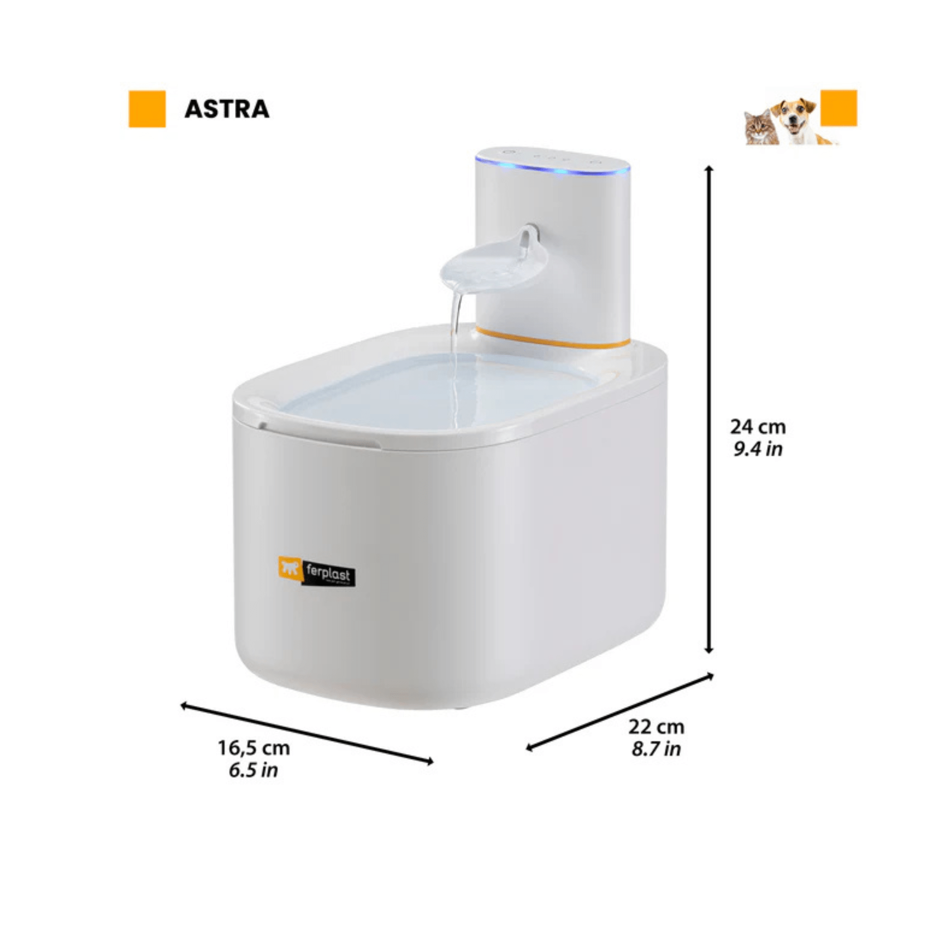 La Ferplast Fuente de Agua Astra es perfecta para asegurar que tu perro o gato beba más agua, especialmente en los días calurosos. Su flujo constante y diseño ergonómico imitan el agua corriente, algo que muchos animales prefieren frente al agua estancada.