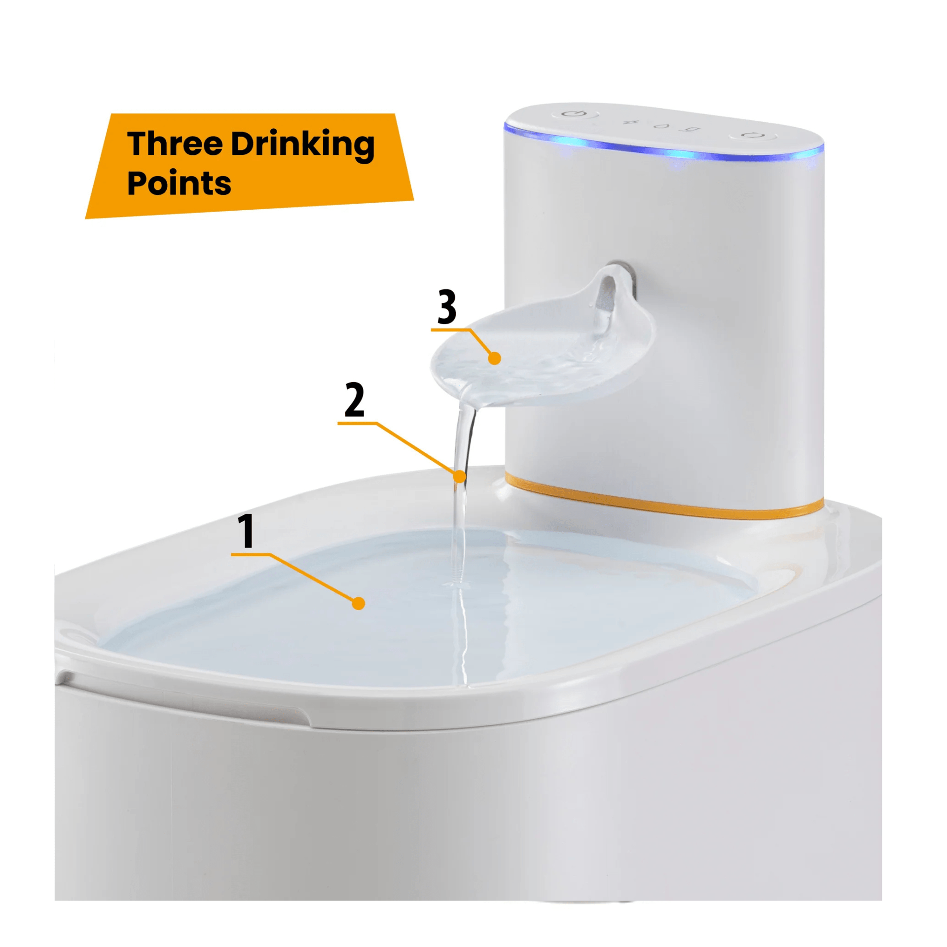 Flujo continuo de agua para estimular la hidratación.