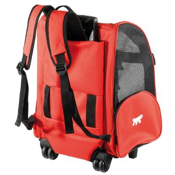 Entre los accesorios pensados para viajar, Ferplast ha diseñado este cómodo trolley, disponible en diferentes tamaños: el modelo pequeño mide 32 x 28 x h 51 cm y está indicado para gatos y perros pequeños mientras que el modelo grande mide 44 x 37 x h 60 cm y está indicado para perros de talla pequeña. El transportín fabricado con nailon resistente está dotado con un asa telescópica que se puede alargar y regular gracias al cómodo pulsador central. Dispone de correas para utilizarlo como una mochila, pero, gracias a sus ruedas, puede ser fácilmente arrastrado; además, posee unos sólidos pies de apoyo.