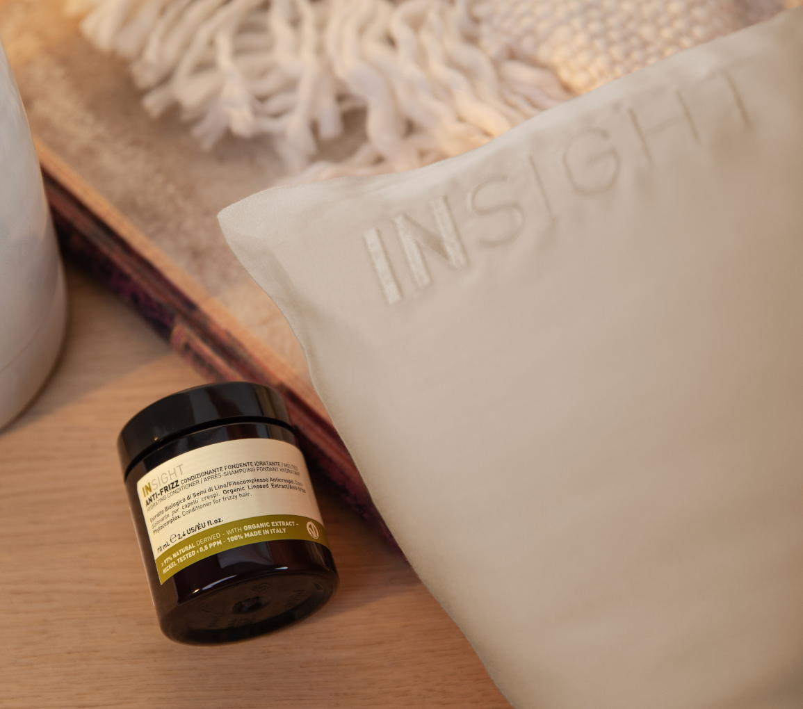 Innovadora funda cosmética vegana de Insight Professional para la belleza y la hidratación del cabello, noche tras noche.