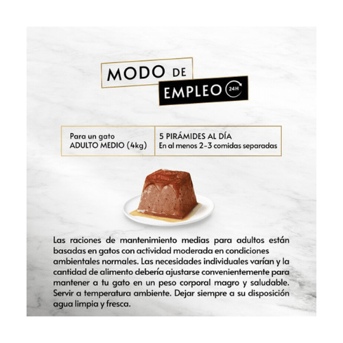 Un gato adulto de unos 4 kg de peso y actividad moderada debe comer alrededor de 5 pirámides al día repartidas en 2 o 3 tomas. Esta cantidad puede variar según las necesidades específicas de cada gato.