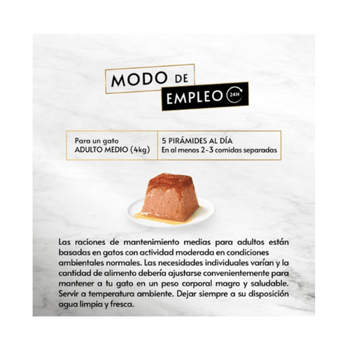 Un gato adulto de unos 4 kg de peso y actividad moderada debe comer alrededor de 5 pirámides al día repartidas en 2 o 3 tomas. Esta cantidad puede variar según las necesidades específicas de cada gato.
