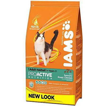 Iams ProActive Adult Hairball con Pollo está especialmente formulado para reducir la capa de bolas de pelo mediante la mejora de la digestión. Una mezcla única de hidratos de carbono, pulpa de remolacha y FOS (que promueve las bacterias sanas en el estómago) mejora la capacidad de su gato para absorber los nutrientes, ayuda a trasladar los alimentos a través de los intestinos, promueve la salud del colon y reduce los residuos y desperdicios, evitando los malos olores. También está reforzada con los aceites de pescado, vitaminas B y la levadura de cerveza para una piel sana y pelaje brillante. Con Iams ProActive Adult Hairball con Pollo, su gato está recibiendo una nutrición completa y equilibrada 100%.