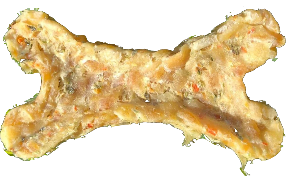 - Ingredientes naturales: Elaborado con piel de vacuno y colágeno, además de vegetales como batata y espinaca.